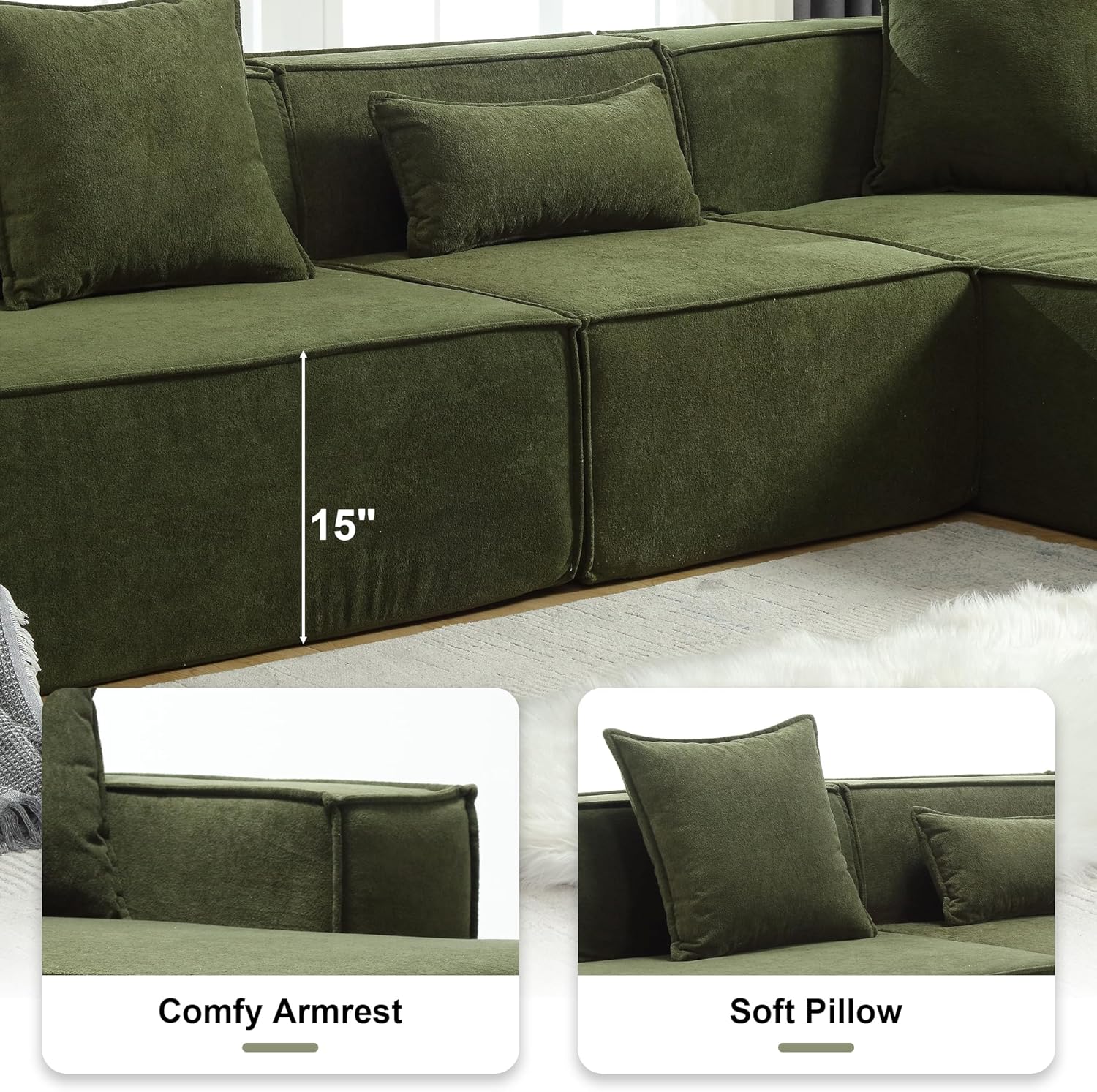 The trendy modular L-shape couch set is made of sentimental and premium breathable terrycloth cloth