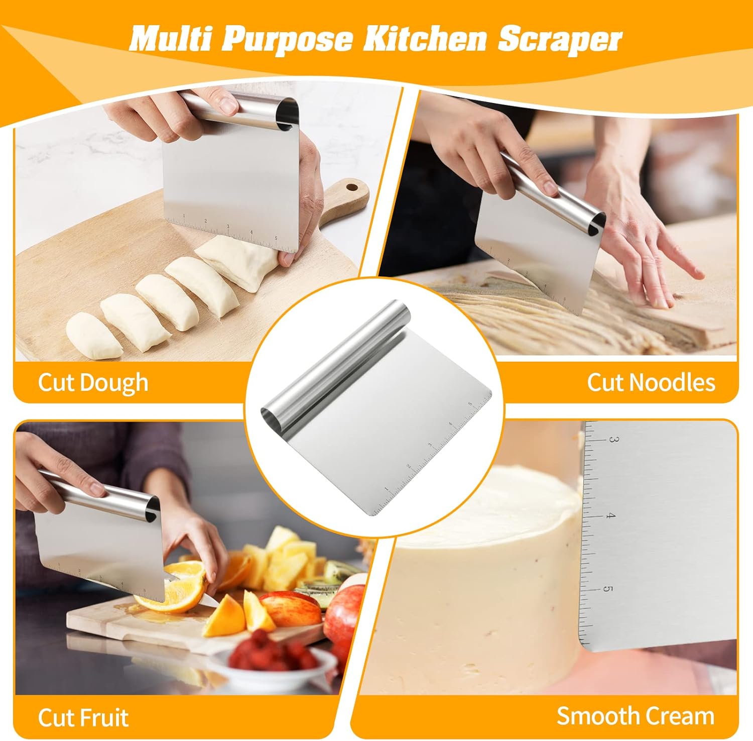 Be the first to review “2 Pack Stainless Steel Food Scraper and Chopper Large Griddle Spatula Kitchen Tool Gadget,Multi-purpose Kitchen Utensil for Dough, Cake, Pizza”