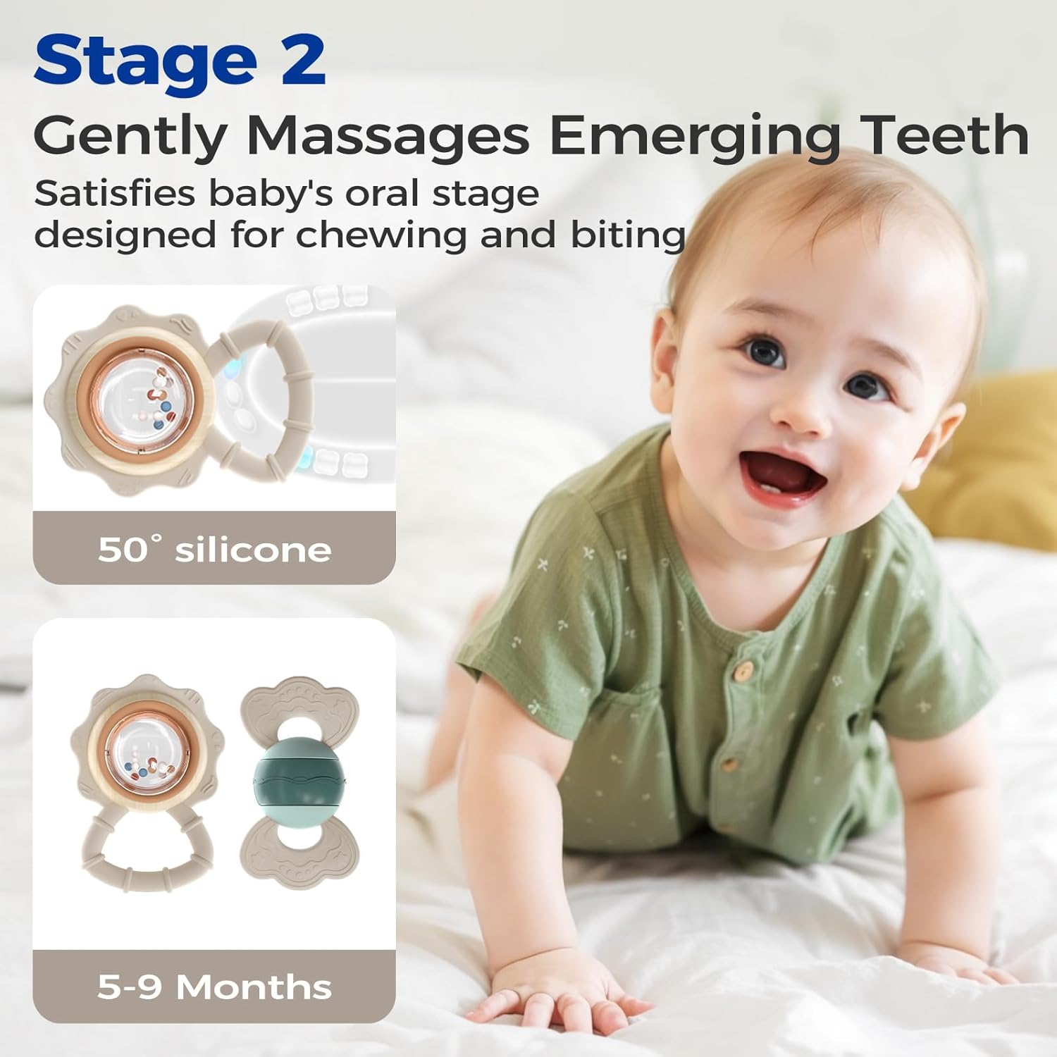 😍 2024 Upgraded 3-Stage Teething Toys 😍: This set of 10 child teething toys is all you want! As infants develop, their teething wants change. Evoceler supplies a 3-softness-level teething toy set to satisfy all teething wants. Teething, chewing, and biting – one set solves all teething issues.