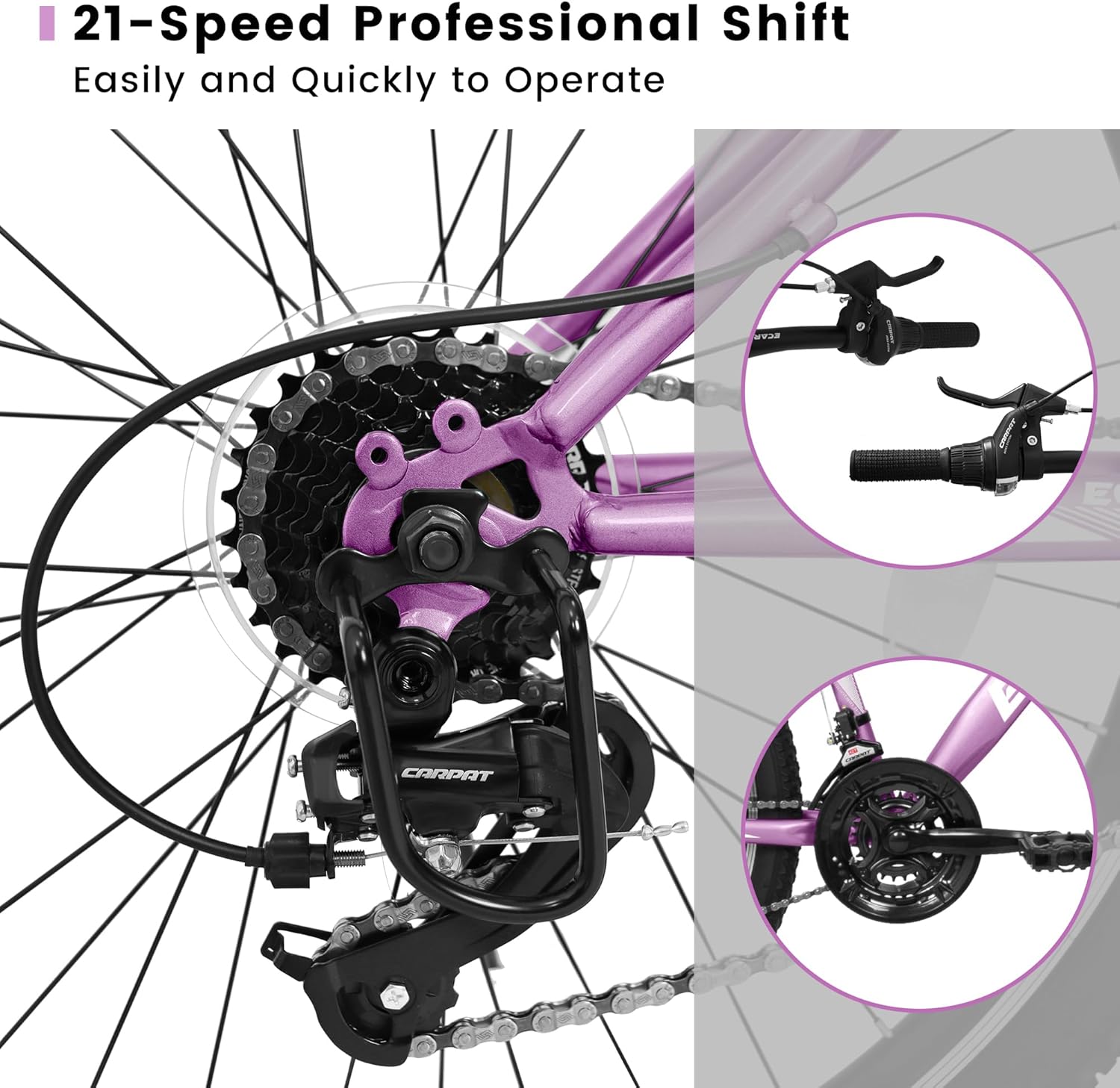 【Highly effective Twin V Brakes】 Ecarpat ladies women mountain bikes function a light-weight V brake system that ensures security, can drastically scale back the braking distance, and ensures you can cease instantly in case of emergency. Security at all times first.
