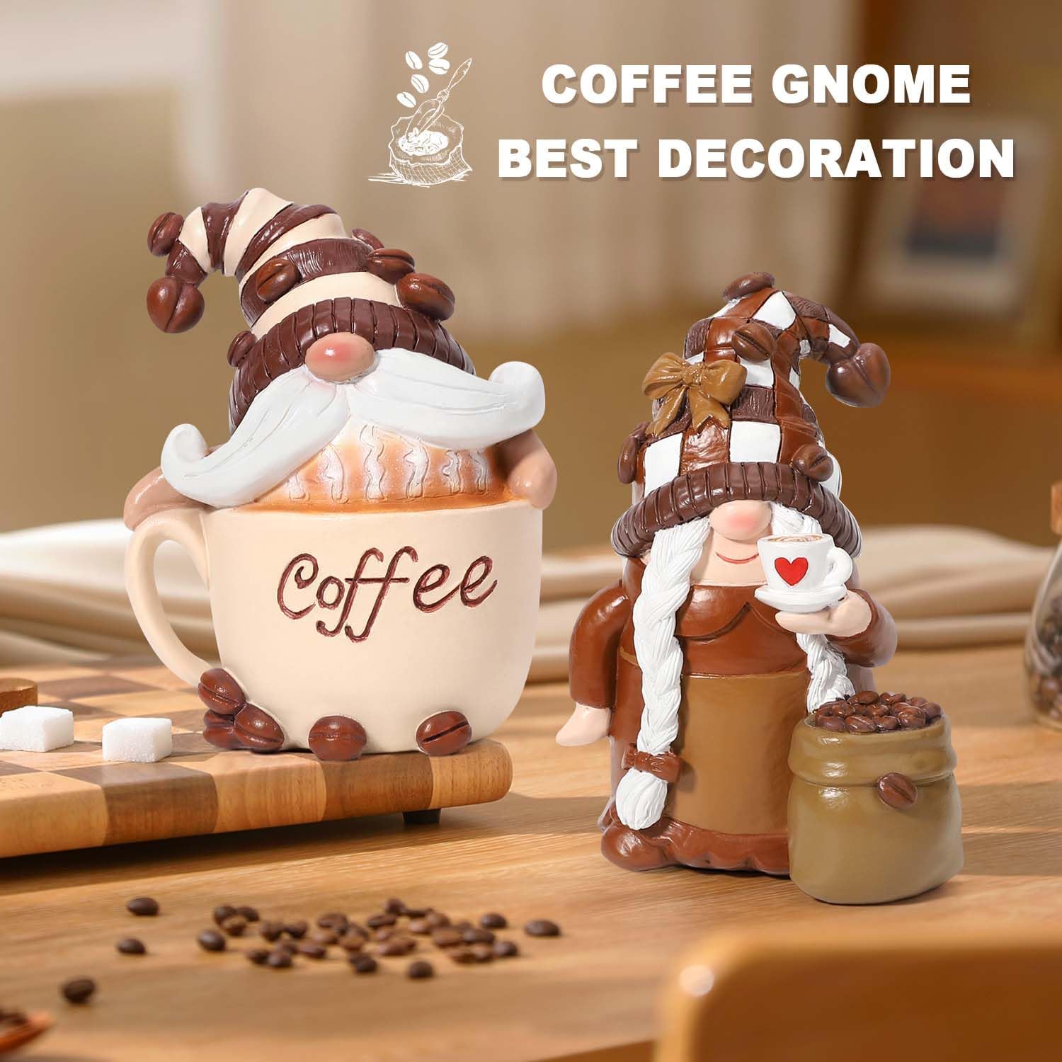★★COFFEE GNOMES Collectible figurines DESIGN – This set consists of two charming handmade espresso gnomes,every with its personal distinctive pose – the skinny gonome holds a cup of espresso and the opposite fats gnome’s physique design with coffe cup,very intersting. Their classical shade scheme is visually interesting.