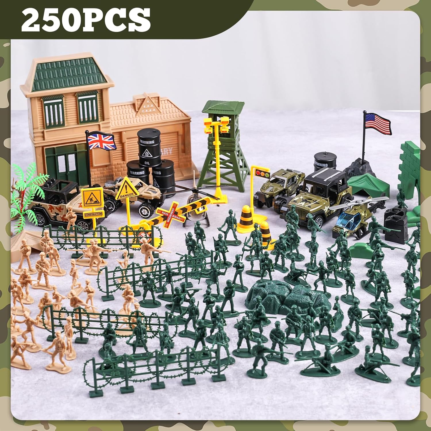 Tremendous Worth Set – Our Military Males Navy Set boasts 200 toy troopers, base props, pull-back autos, helicopters, and a wide range of equipment. Kids can unleash their creativity, crafting quite a few situations, immersing themselves in a fascinating navy world brimming with rigidity and confrontation.