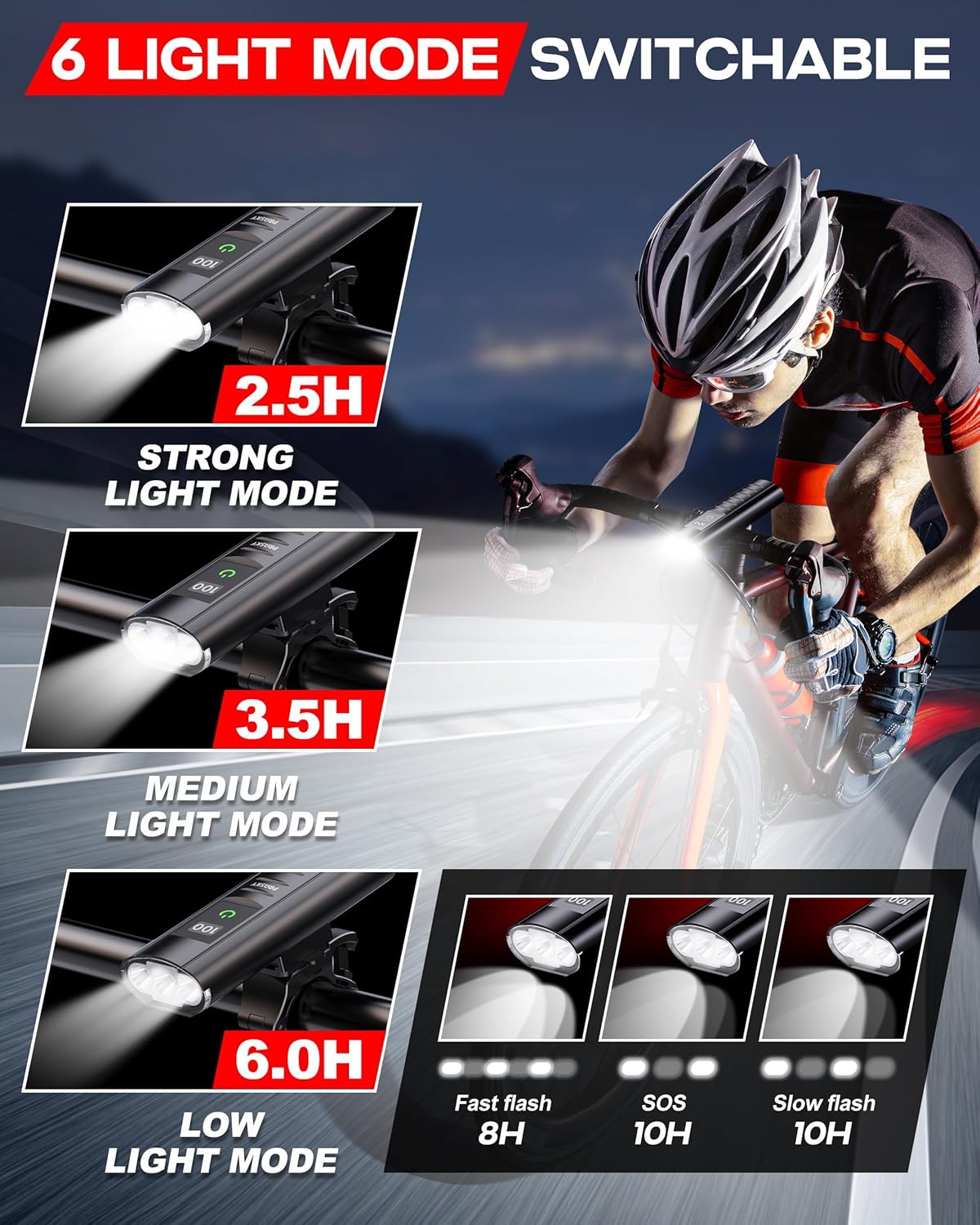 [Military Grade & IP65 Waterproof] The LED highway bike mild is crafted with a premium aluminum alloy shell, providing wonderful impression resistance and warmth dissipation, guaranteeing sturdiness and longevity. The bike lights for evening driving with an IP65 water resistant ranking, you’ll be able to take pleasure in biking even in wet, snowy or foggy situations.