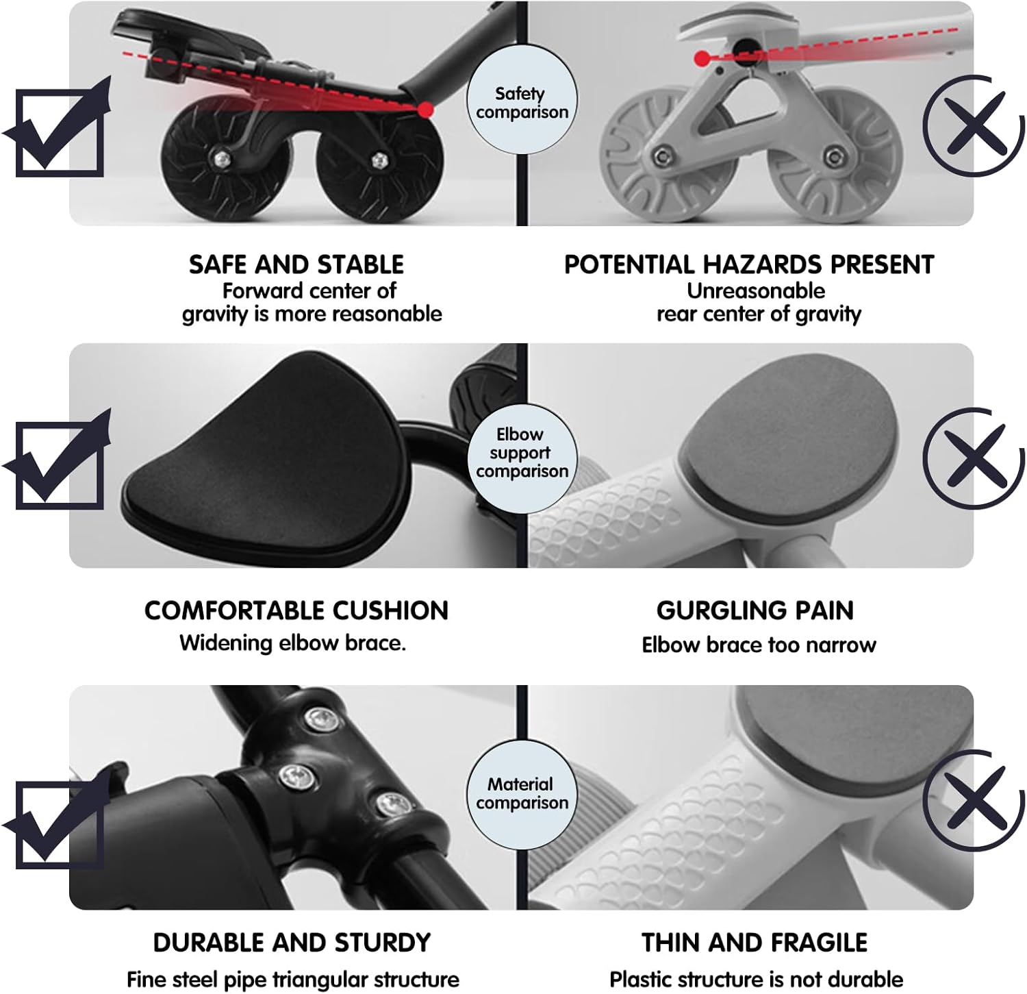 ab curler has a double widen wheels design that will increase the wheelbase and make contact with space with the bottom, decreasing lateral sway and offering secure and protected exercises.