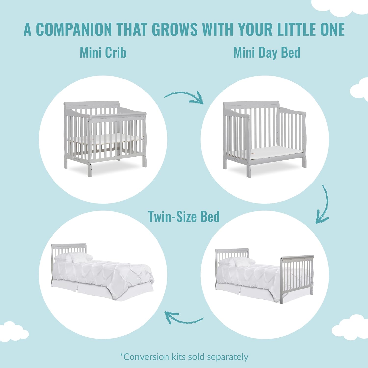 The Dream On Me Aden Convertible 4-in-1 Mini Crib is a marvellous mix of fashion and substance. Fabricated from New Zealand pinewood, its sturdy construct, stable body and strict adherence to security requirements are a testomony to its sturdiness, whereas its clear strains and quite a lot of out there finishes spotlight its type quotient. Its utility is plain – it sits low on the ground making it simple to succeed in your child and has a handy 3-position, adjustable mattress assist system. Its small measurement makes it ideally suited for a small nursery, when you find yourself co-sharing, or have a number of infants to are likely to! It meets the rising wants of your youngster – convert it from a crib to mini daybed and twin-size mattress. It has a stationary (non-drop aspect) rail design, which supplies the utmost in product security. All Dream On Me cribs are designed with a concentrate on security, are JPMA licensed and meet all relevant ASTM and CPSC requirements. All instruments for meeting are included and we suggest the Dream On Me non-toxic, Greenguard Gold licensed mini or transportable crib mattress for the right match.