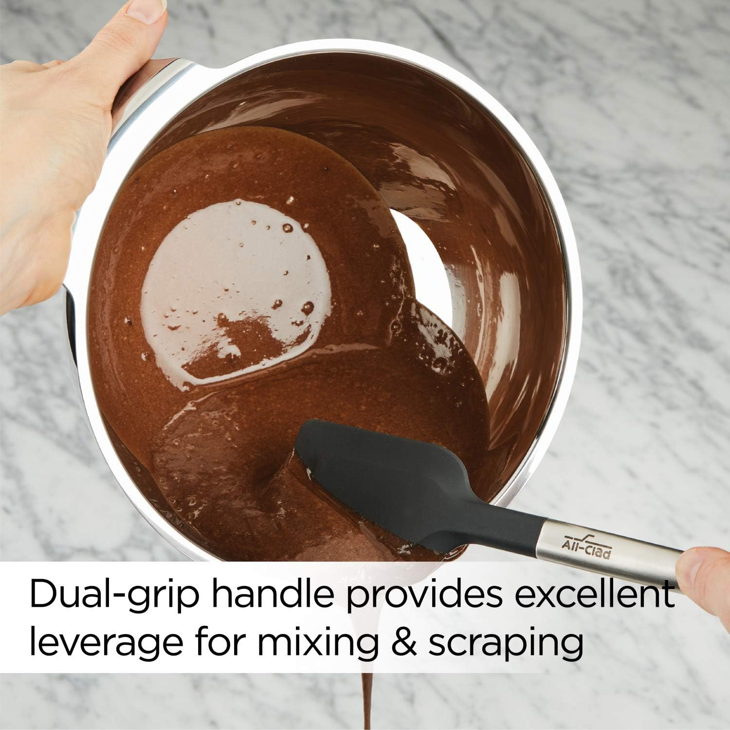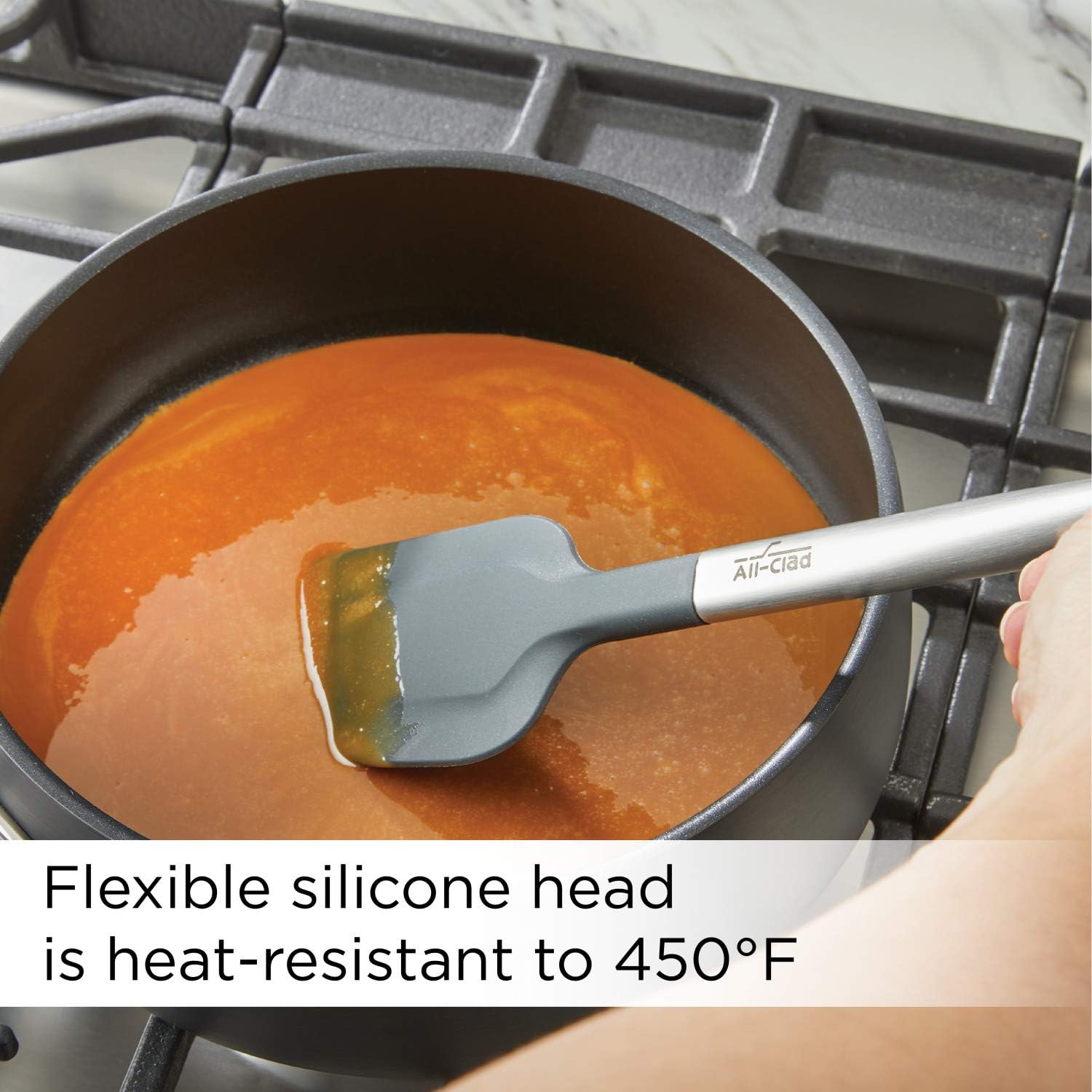 Incorporates a versatile, nonstick silicone head and a sturdy brushed stainless-steel deal with