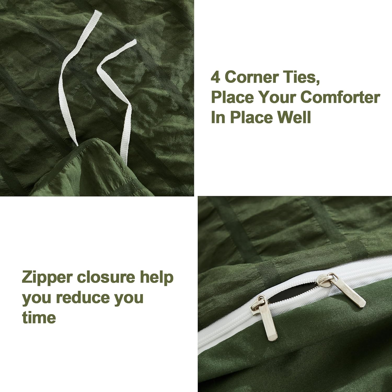 AveLom Dark Olive Green Seersucker Duvet Cover Set King (104 x 90 inches), 3 Pieces (1 Duvet Cover + 2 Pillowcases), Soft Washed Microfiber, Textured Duvet Cover with Zipper Closure, Corner Ties