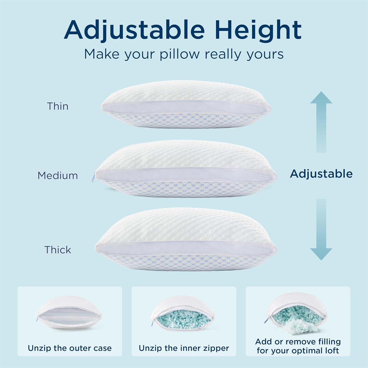Personalised Coziness: This shredded reminiscence foam pillow comes with a spare pack of filling, permitting you to stuff or scale back filling for a personalised coziness that feels excellent.