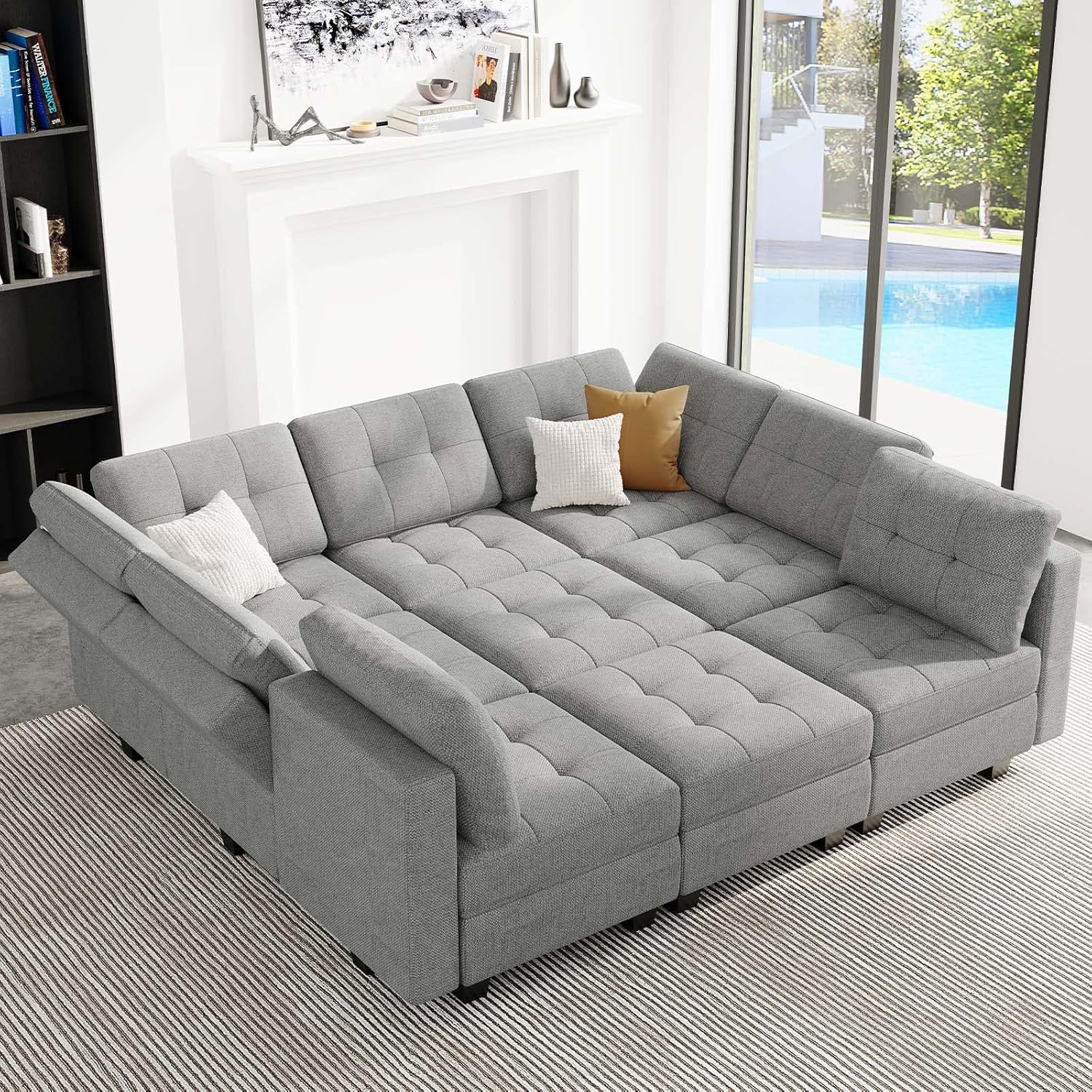 Simple to assemble:The dimension of modular sectional sleeper couch is 84.7″(L)*90.2″(W)*33.5″(H).Simple to put in, no instruments required,very simple to comply with directions to assemble. The couch is moved individually so they’re nice to navigate tough hallways or tight doorways. The modular sectional sofa is available in 9 separated packing containers that typically might arrive in several days.