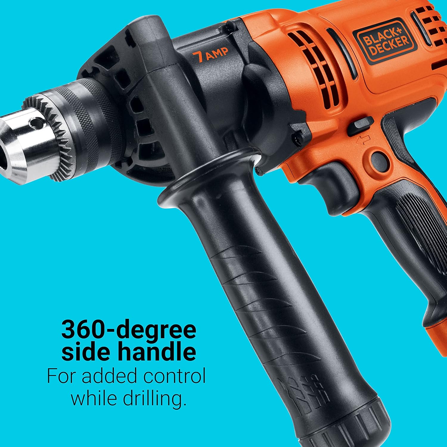 360-DEGREE SIDE HANDLE – Gives further management and stability whereas drilling.