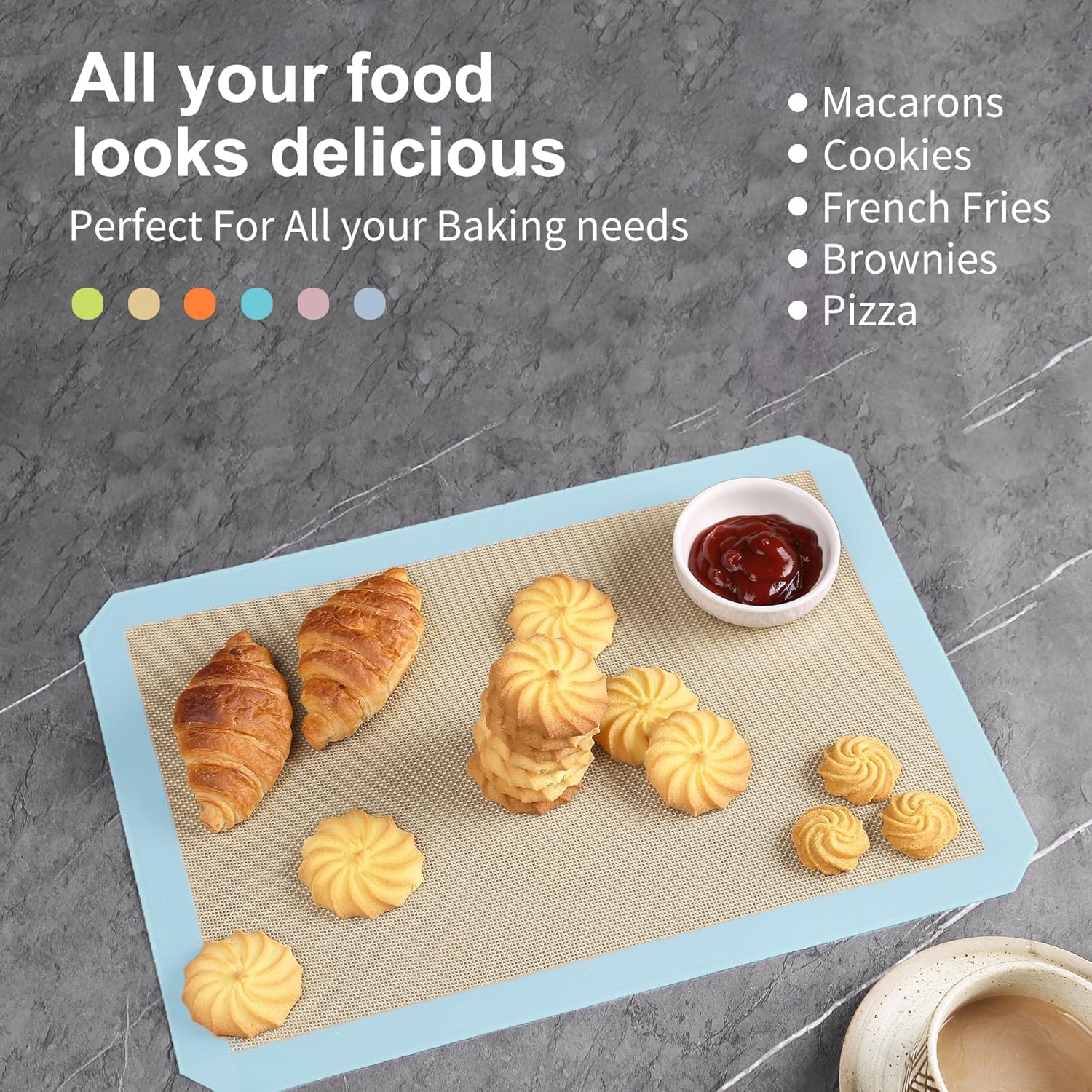 【Multipurpose】Silicone mat for baking set contains 2 half sheet baking mats (16.53 x 11.61in) and 1 quarter baking mat (11.81 x 7.87in). Silicone baking mat is nice for pastries, cookies, breads, macarons, meats and greens. Additionally they have the added perform of constructing your baked items look scrumptious.