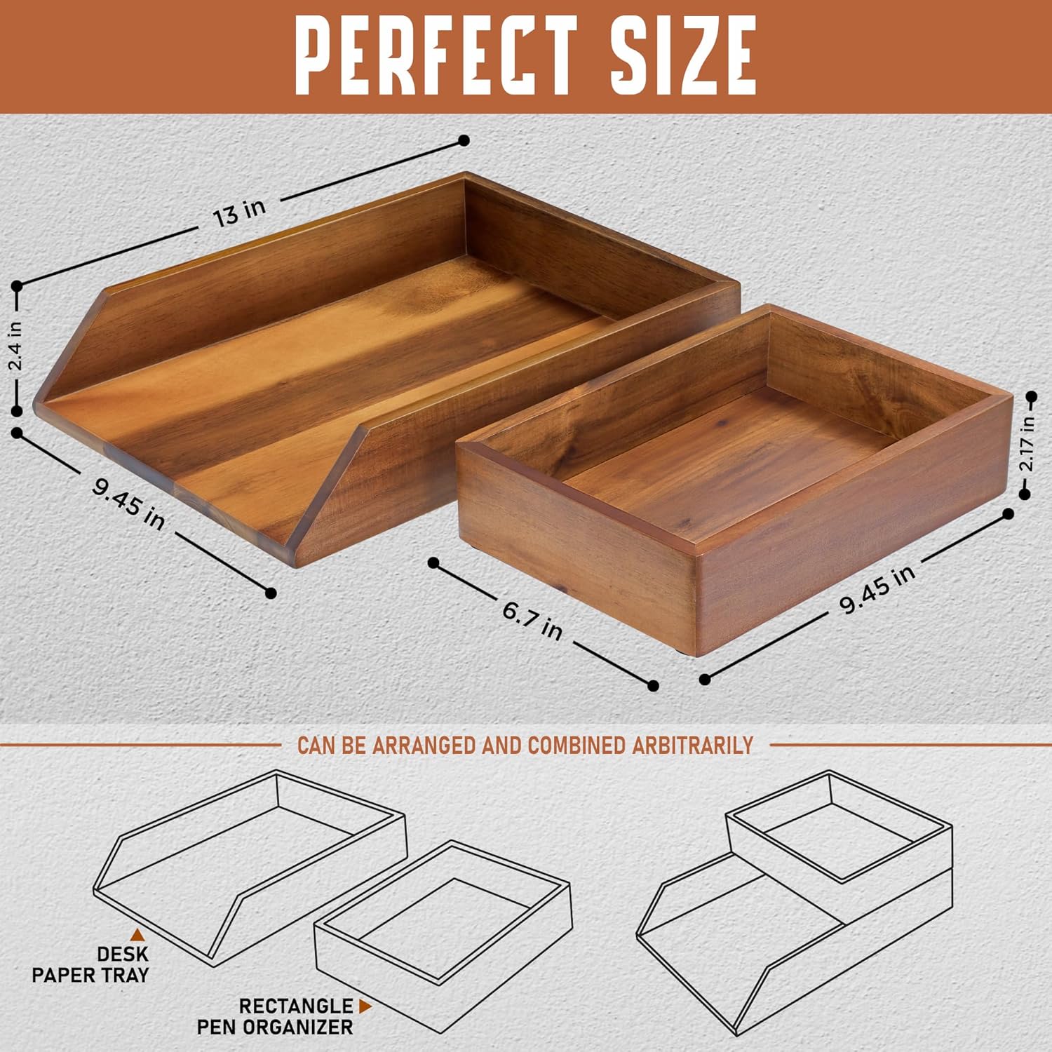 Rectangle Accent Tray: An oblong acacia wooden holder of 9.45 x 6.7 x 2.2 inches that provides an possibility for gadgets akin to pens, staplers, scissors, tape, sticky notes, paper clips, stationery, and extra. This desk drawer organizer supplies an answer for small but necessary gadgets in your each day work.