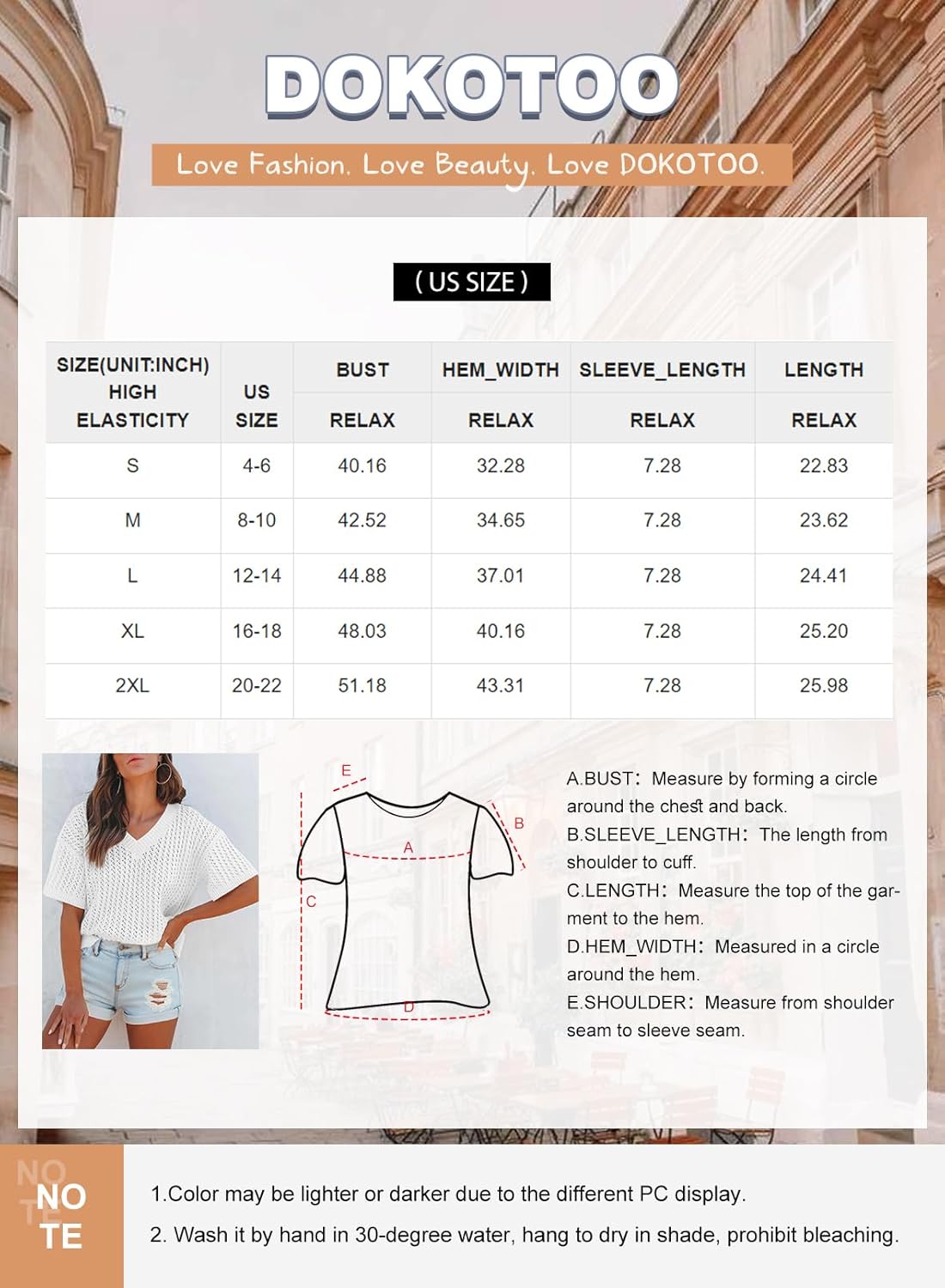 Dokotoo Womens Casual Summer Tops V Neck Short Sleeve Shirts Solid Hollow Out Lightweight Loose Fit Sweater Blouses