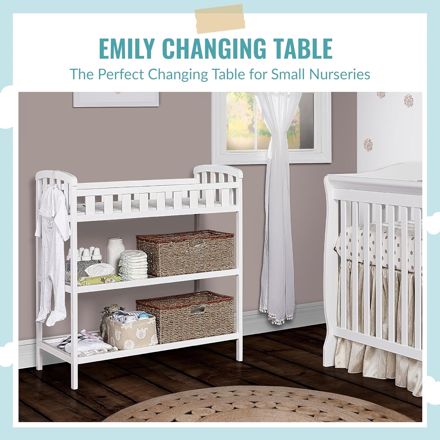 COMPACT & PORTABLE: Emily occupies a small footprint and is right for small nurseries. It’s light-weight and simply moveable permitting you to maneuver it round simply to make sure you can change LO anyplace at dwelling with ease