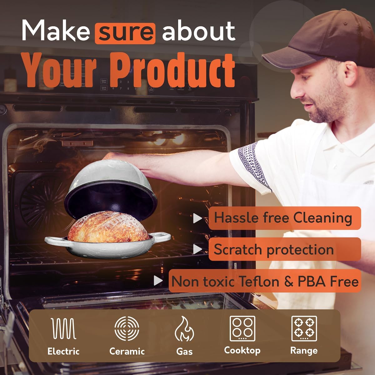 BUY WITH CONFIDENCE: Headquartered in New York, a hub of innovation and creativity, Krustic is a model that prides itself on the excellent high quality and design of the Dutch oven for bread. Our devoted crew in Brooklyn conceptualizes and meticulously checks each enamel forged iron Dutch oven, guaranteeing that you simply obtain nothing lower than one of the best. Our buyer assist crew is at all times on standby, able to serve you if in case you have any questions or issues about our enamel Dutch oven.