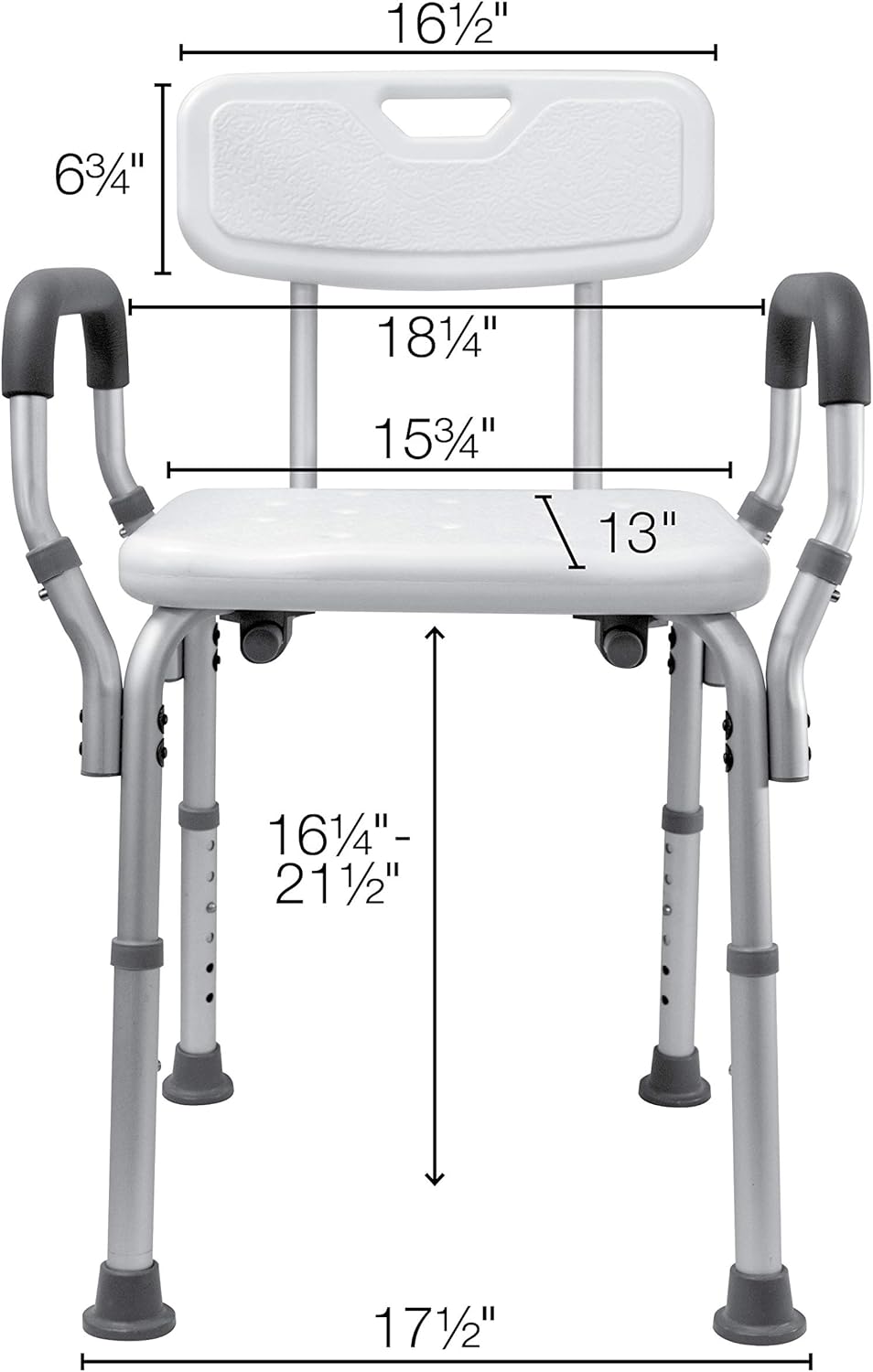 Designed for You: Peak adjustability makes certain the bathe seat with again matches you moderately than you having to suit the bathe bench. The Bathe Chair seat is heaigh adjustable from 16″ to 21″ in 1″ increments. It can additionally match anyplace within the lavatory together with inside the bathtub or the bathe stall.