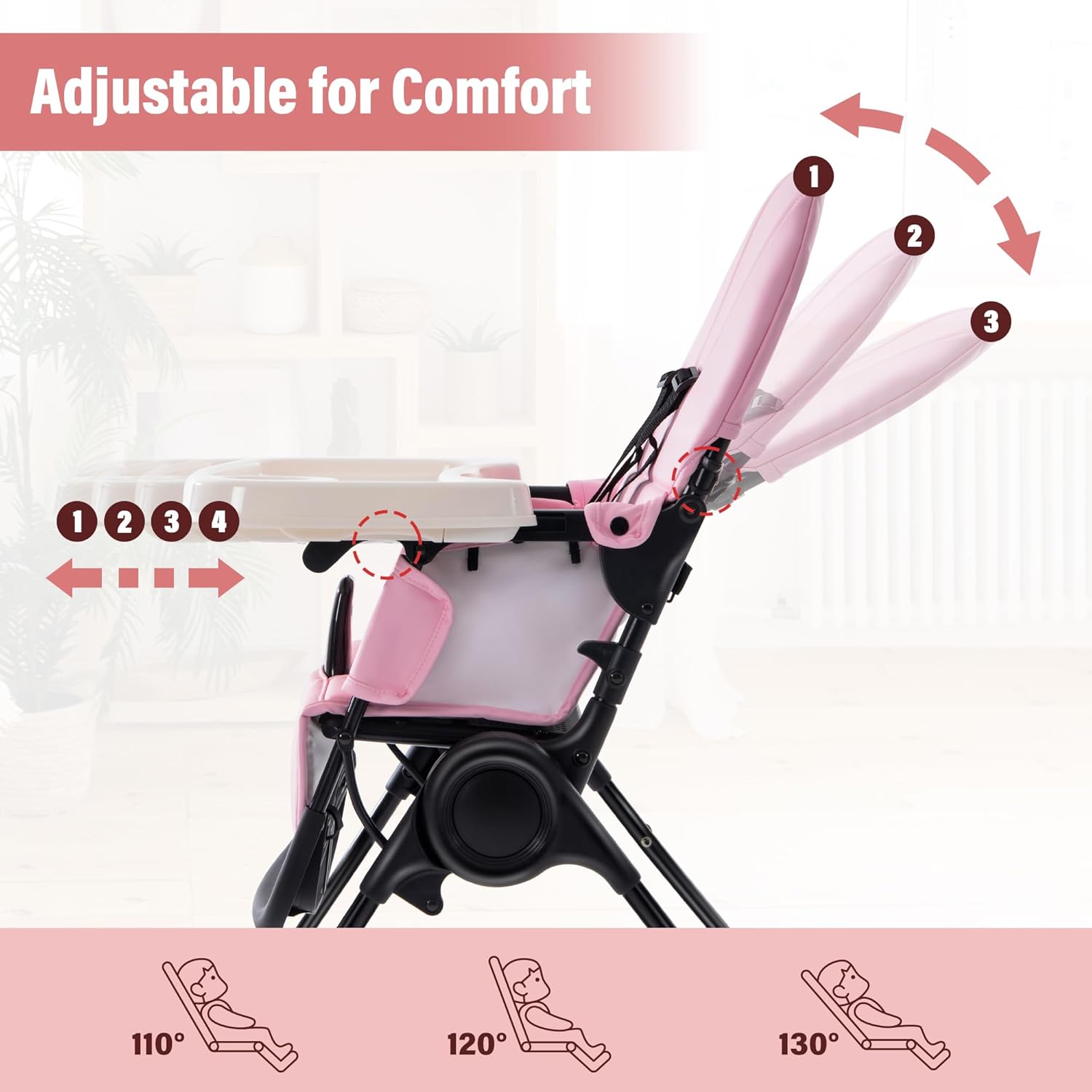 【Adjustable Options】The toddler excessive chair provides 3 recline positions for the backrest and 4 adjustable tray positions, catering to infants and youngsters throughout mealtime or play. Making certain each consolation and performance, it permits for a comfy expertise whereas consuming, enjoying, or enjoyable.