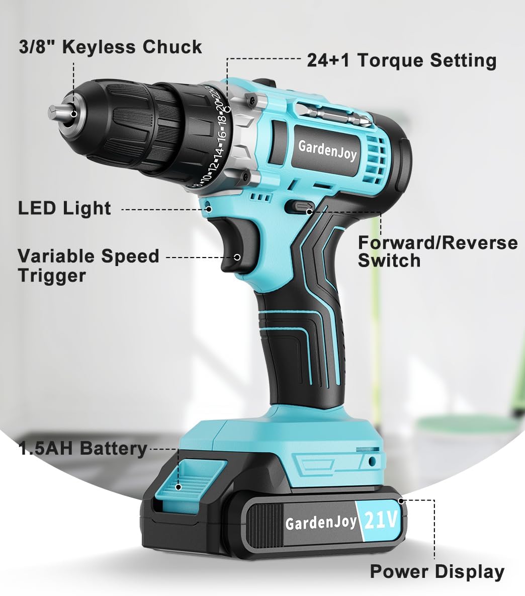 ✅【Wonderful Helper for Residence Enchancment】GardenJoy cordless drill makes use of high quality motor, max torque 280 in-lbs (30 NM). It is excellent for drilling wooden, steel, plastic, all screw drive duties at dwelling and lots of different DIY tasks. It can prevent 30% of labor time and vitality that may carry a greater person expertise than 12v energy drill.