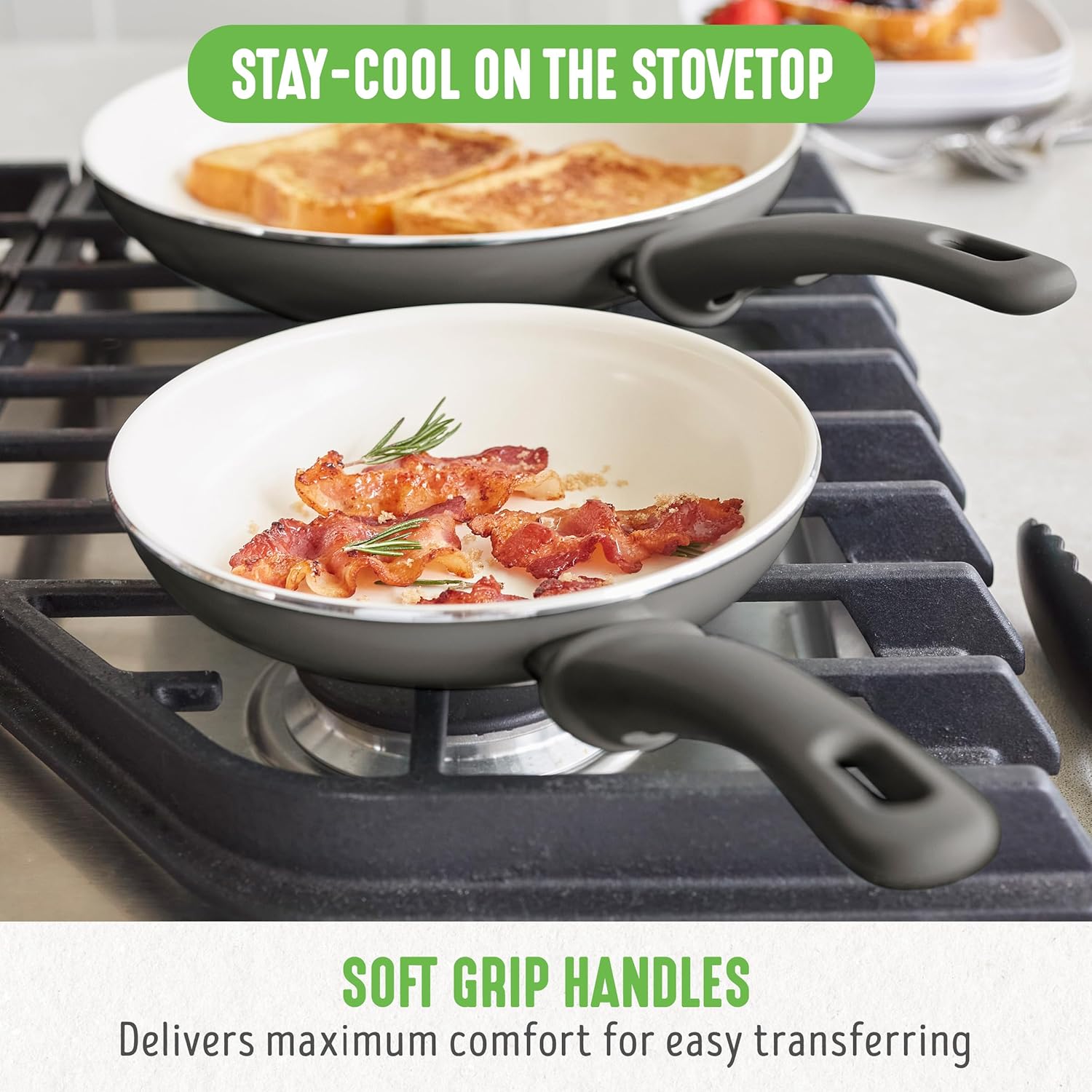 HEALTHY CERAMIC NONSTICK: Our wholesome and easy-to-clean ceramic nonstick coating is derived from sand and delivers easy launch with fast cleanup
