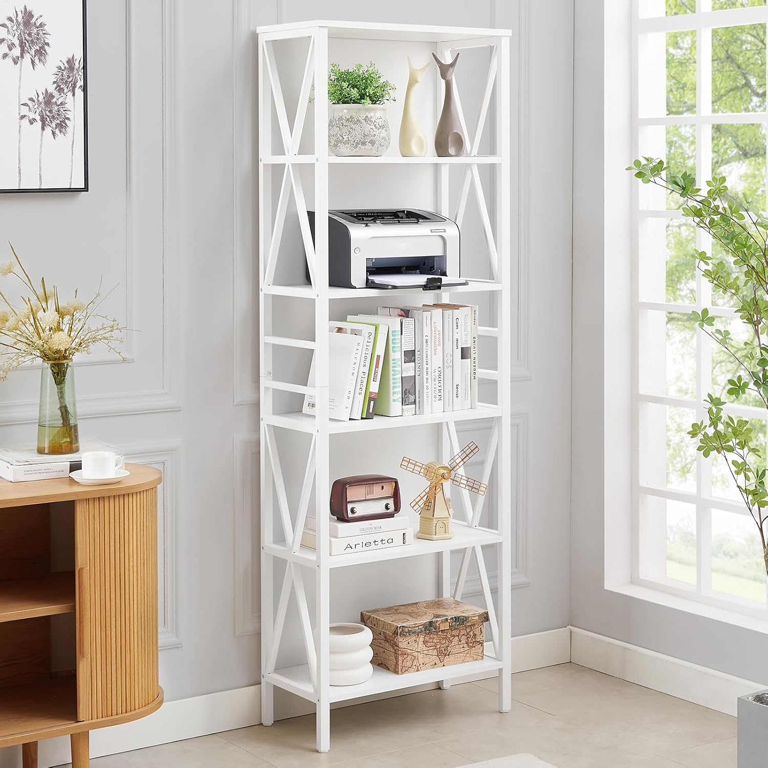 Bookcase with Again Panel Easy to assemble with detailed set up directions Stable and secure construction Nice structural design with wealthy design sense and practicality In depth storage attributes can save area and enrich storage content material