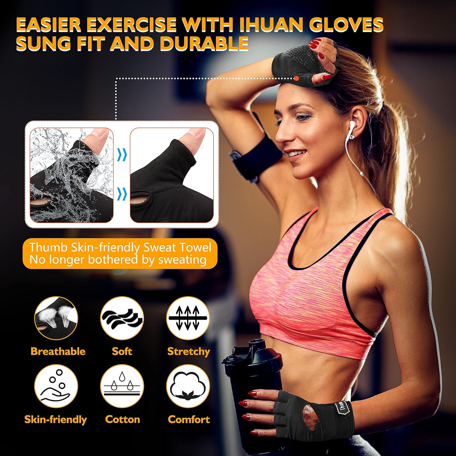 ihuan New Breathable Workout Gloves for Women & Men – No More Sweaty & Full Palm Protection Gym Exercise, Cycling, Fitness, Weightlifting, Pull-ups, Deadlifting, Rowing