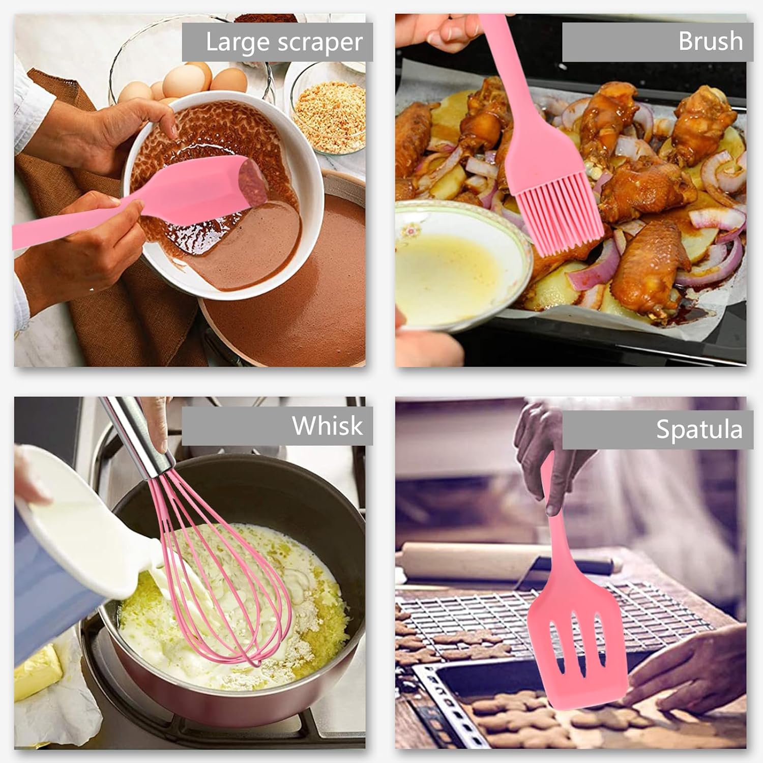 PACKAGE INCLUDES:You’ll obtain 5 items of silicone kitchen utensils, Pink, together with 1 slotted spatula, 1 giant spatula, 1 small spatula, 1 whisk and 1 oil brush. Every silicone kitchen utensil has a wonderfully balanced weight and stylish design that can add shade to your kitchen decor. You probably have any questions on our silicone spatula set throughout use, please don’t hesitate to contact us, we are going to clear up the issue for you as quickly as doable.