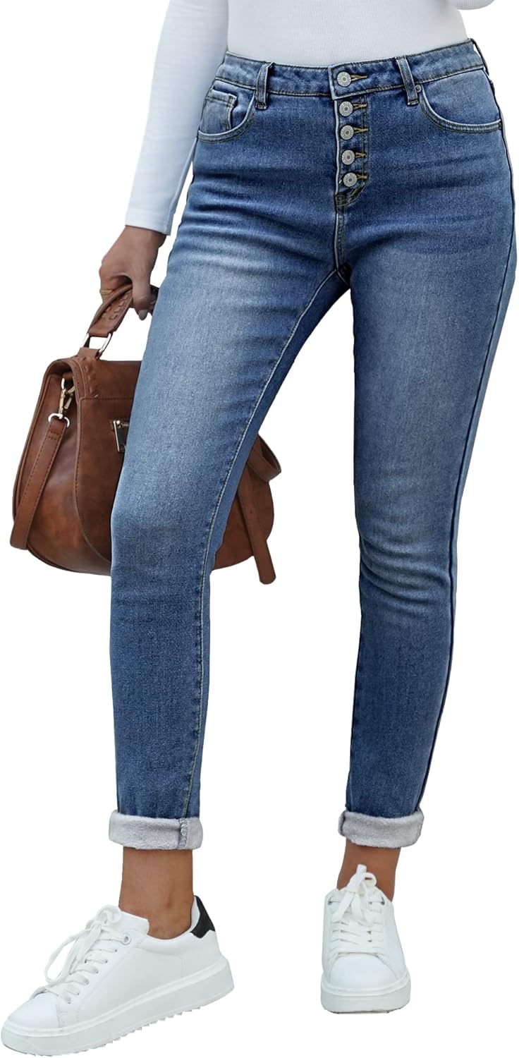 Fleece lined skinny denims, type with a puffer jacket and put on with boots for a cute jean outfits.