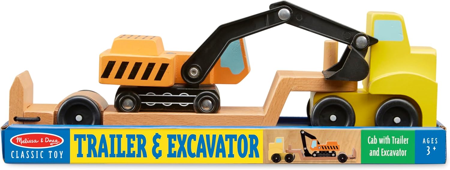 Hitch the trailer, load the excavator and roll out! As this tall yellow truck heads to the constructing web site, the powerful excavator stays in place on the grooved flatbed. Then the ramp comes down, the excavator rolls off . . . it is time to dig!
