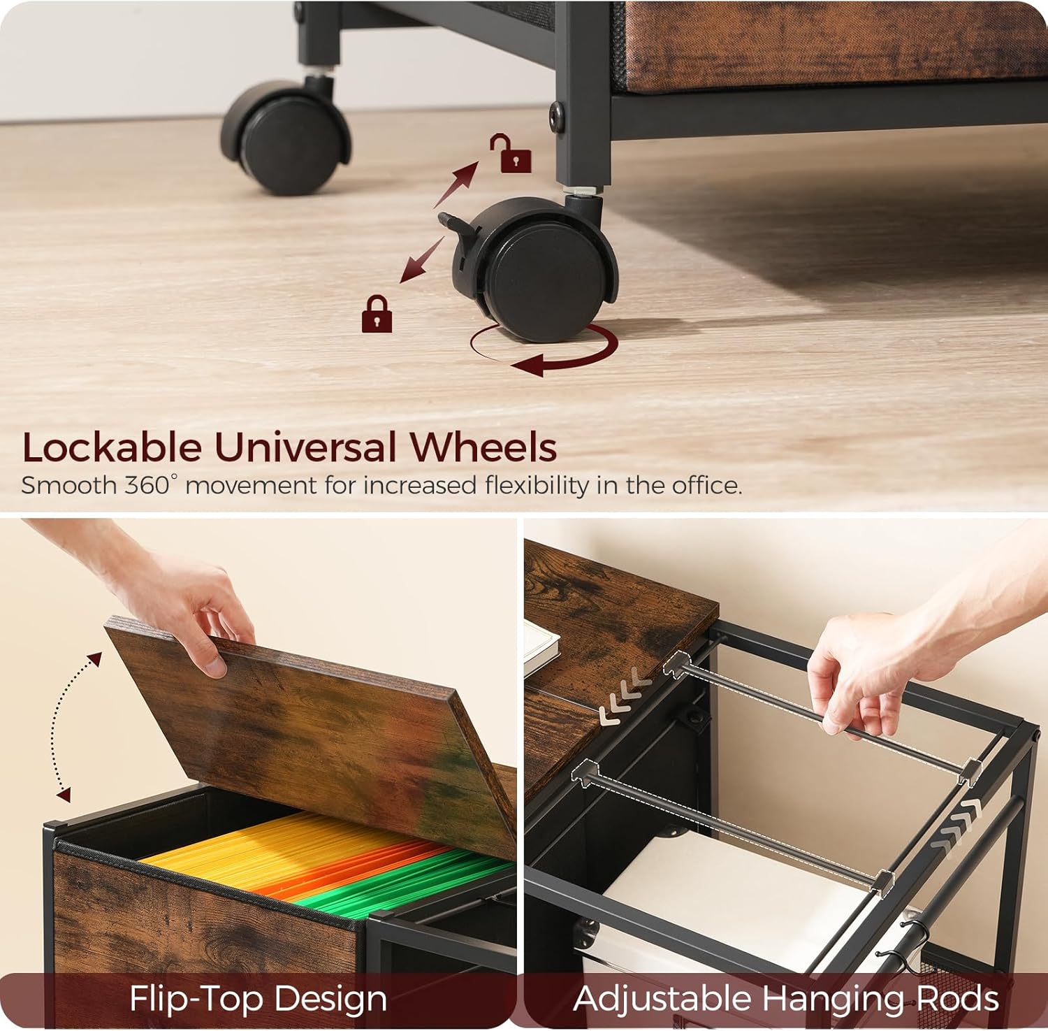 Comfort and Mobility: The submitting cupboard for residence workplace boasts a flip-top lid for straightforward entry to objects within the drawer. With 4 industrial common wheels(2 lockable), it provides flexibility for each fastened and cellular use, simply creating a versatile working setting