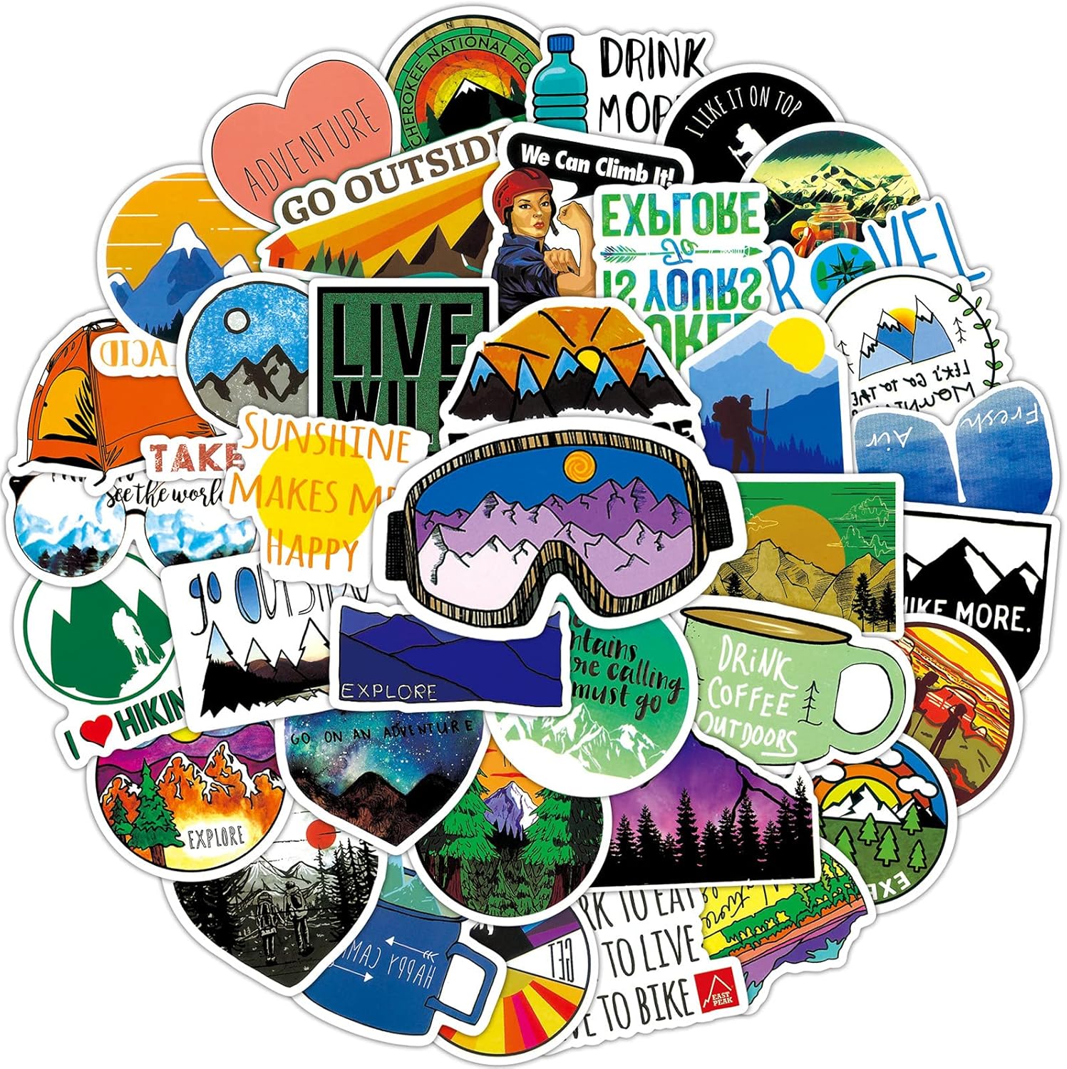 MORACLE–Outside Mountaineering Tenting Journey Stickers for Water Bottle,50PCS Vinyl Waterproof Journey Stickers for Laptop computer Baggage Bike Bumper, Discover Decals for Campers Boys Adults Teenagers Ladies