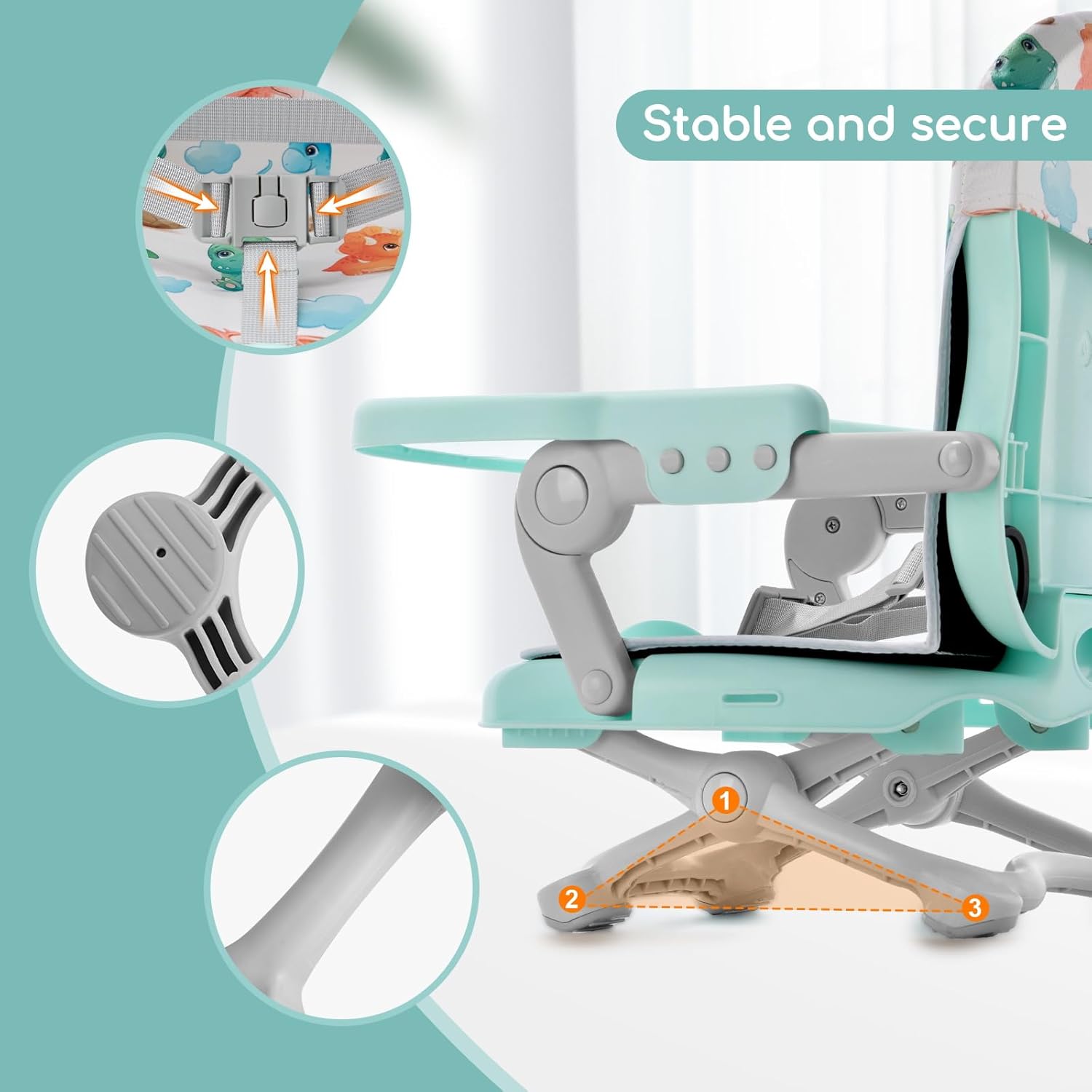 🦖【Steady and Secure】 The excessive chair booster seat is designed with double security belts on the underside and again. Non-slip foot pads be certain that the child transportable excessive chair could be firmly fastened on the chair and stop the booster seat from tipping over or sliding. The three-point harness and non-slip bumps hold child safe and secure within the transportable excessive chair. Detachable delicate PU cushion present child extra comfy. The Uuoeebb toddler booster seat with again makes consuming together with your child a easy matter.