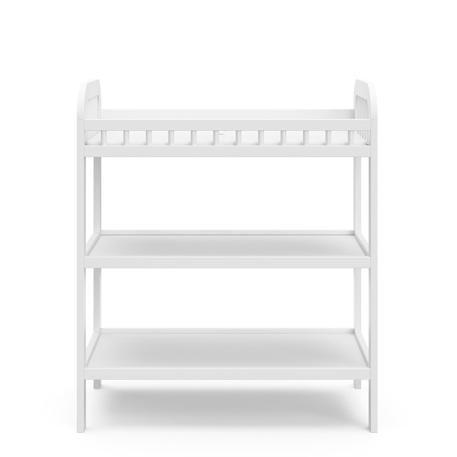 BONUS WATER-RESISTANT CHANGING TABLE PAD: Simple-to-match diaper altering desk contains bonus water resistant altering desk pad and security strap; Child change desk contains 2 spacious, open storage cabinets to arrange nursery and altering necessities