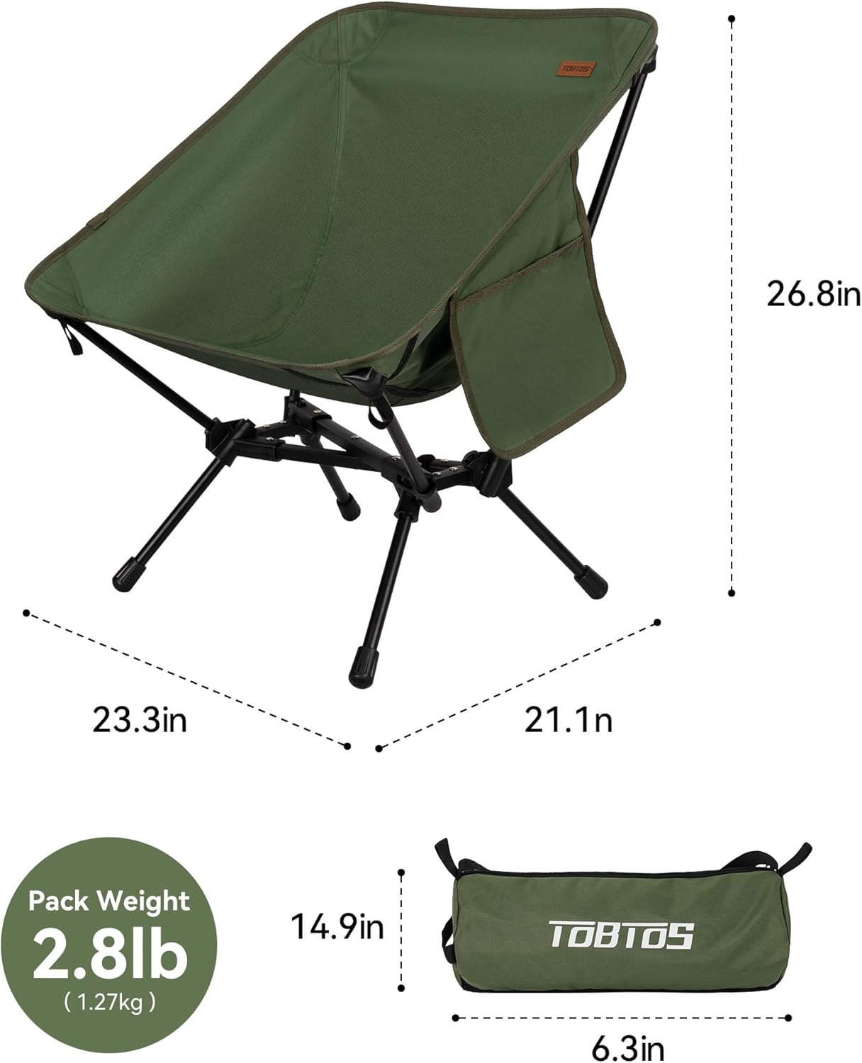 Compact & Transportable: TOBTOS tenting chair may be very compact and light-weight, solely weighing 2.8 lbs. It may be folded into 14.9 (L) x 6.3 (W), match right into a purse, and may be carried round, making it appropriate for any out of doors journey