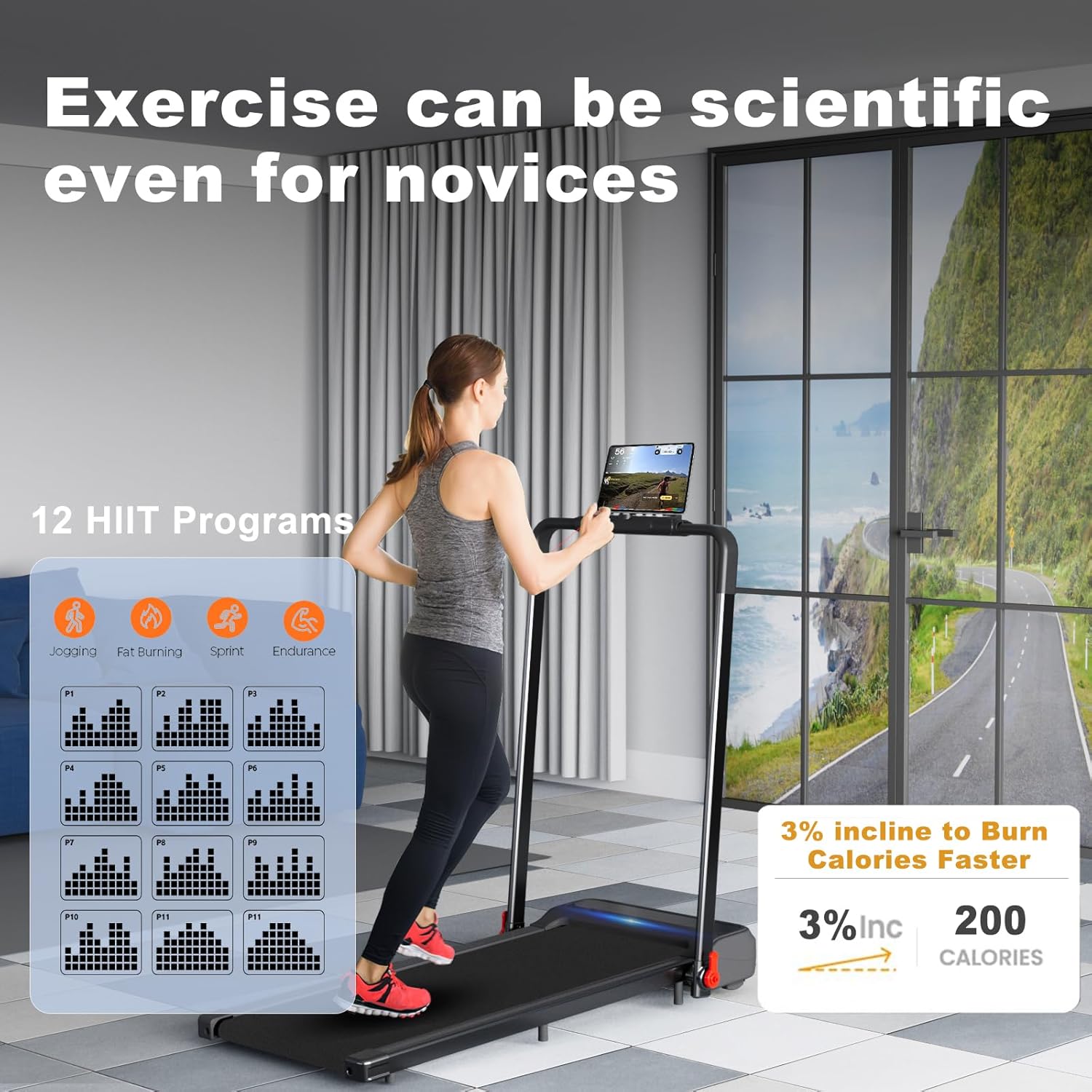 2-IN-1 RUNNING/WALKING TREADMILL:Simply change between operating and strolling modes with the handrails, 0.6-6 mph with the handrails up and 0.6-4 mph with the handrails down