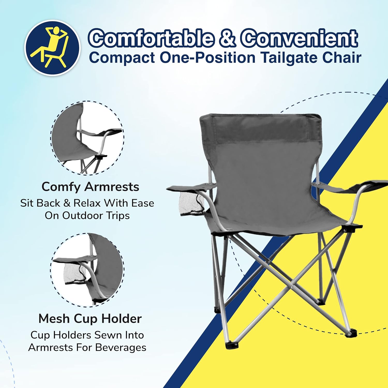 COMFORTABLE ARM RESTS AND CUP HOLDER: This collapsible exterior chair gives a snug, transportable seat, and includes a mesh cup holder sewn into the armrest in order that your ice chilly beverage is all the time conveniently inside attain if you are lounging